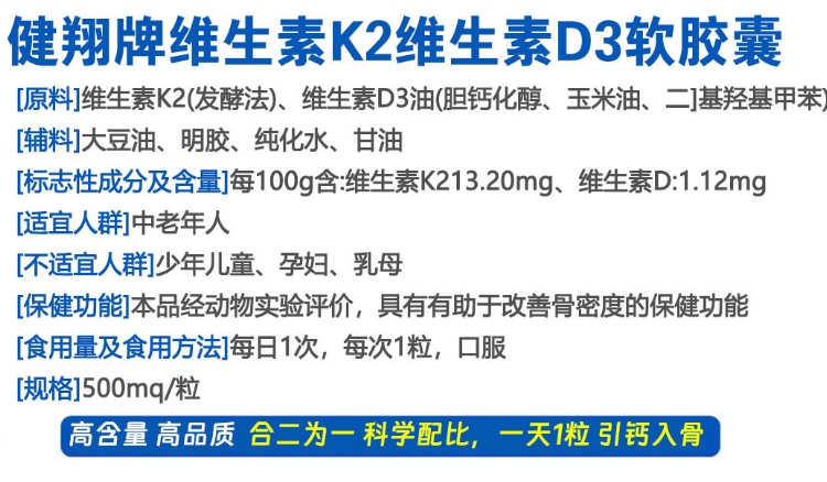 【產(chǎn)品名稱】:健翔牌 維生素K2維生素D3軟膠囊 私域